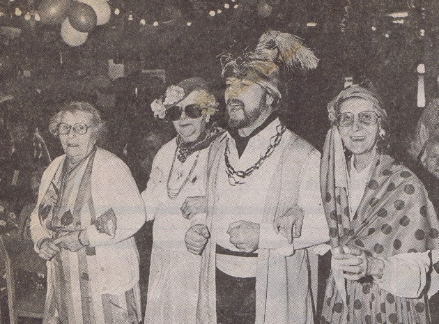 Opvallend was dit jaar de prachtige en mooie en ook originele costumering, zowel bij de bewoners als bij de medewerkers. Wij zagen clowns of ze zo uit het circus waren weggelopen, haremdames, ’n Tiroler jager, ’n sjeik, madame fatale, J.R. uit Dallas, een schoorsteenveger, twee rolstoelbezitters die hier een t.v. op hadden gezet, waar zij zelf doorheen keken, een kok die ze iedere donderdag bruin bakt, een grote gele bij, Spanjaarden, zigeuners, matrozen, ’n bloemenmeisje en nog meer gevarieerde costumering. Het was een lust voor het oog.