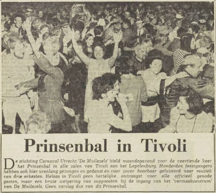 Wat een plaatje uit de Utrechtse carnavalsgeschiedenis! In Tivoli aan het Lepelenburg barstte het feest los tijdens het Prinsenbal van Stichting Carnaval Utrecht “De Muilezels”. Voor de veertiende keer werd het bal gehouden – en dat was te merken ook.